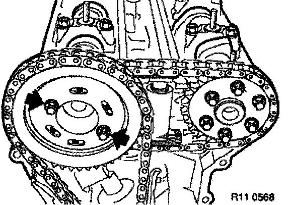 Fit sprocket with chain to inlet camshaft on cylinder bank 1 to 4 with long bores aligned centrally.