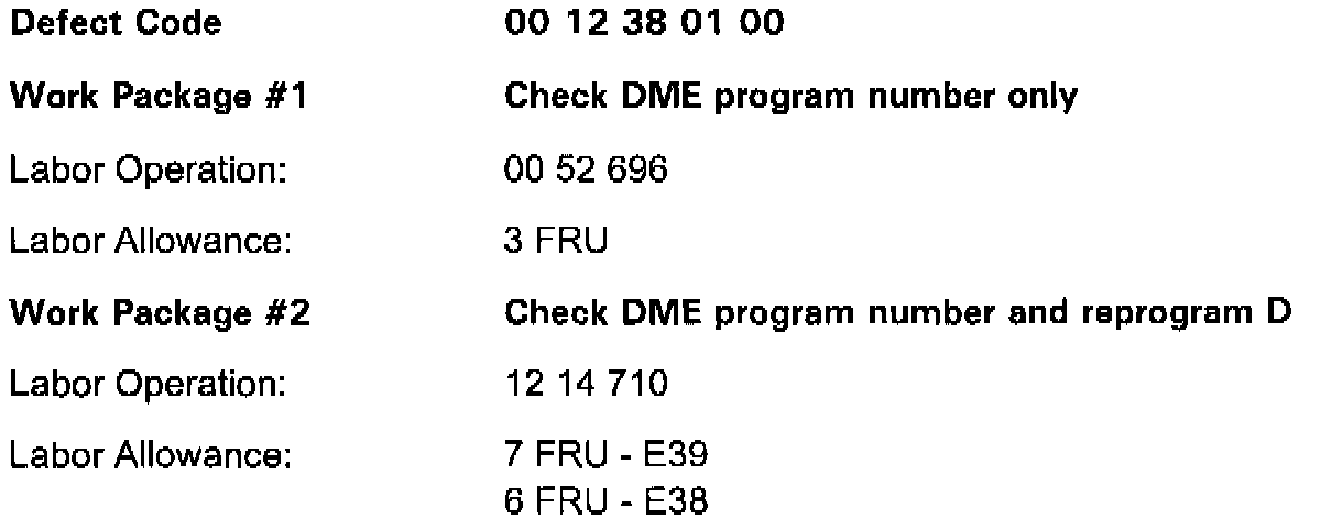 3. If the "programmed control unit # " matches one of the above listed numbers reprogram the DME with CD21.0 or higher. Adaptation values must be cleared after programming.