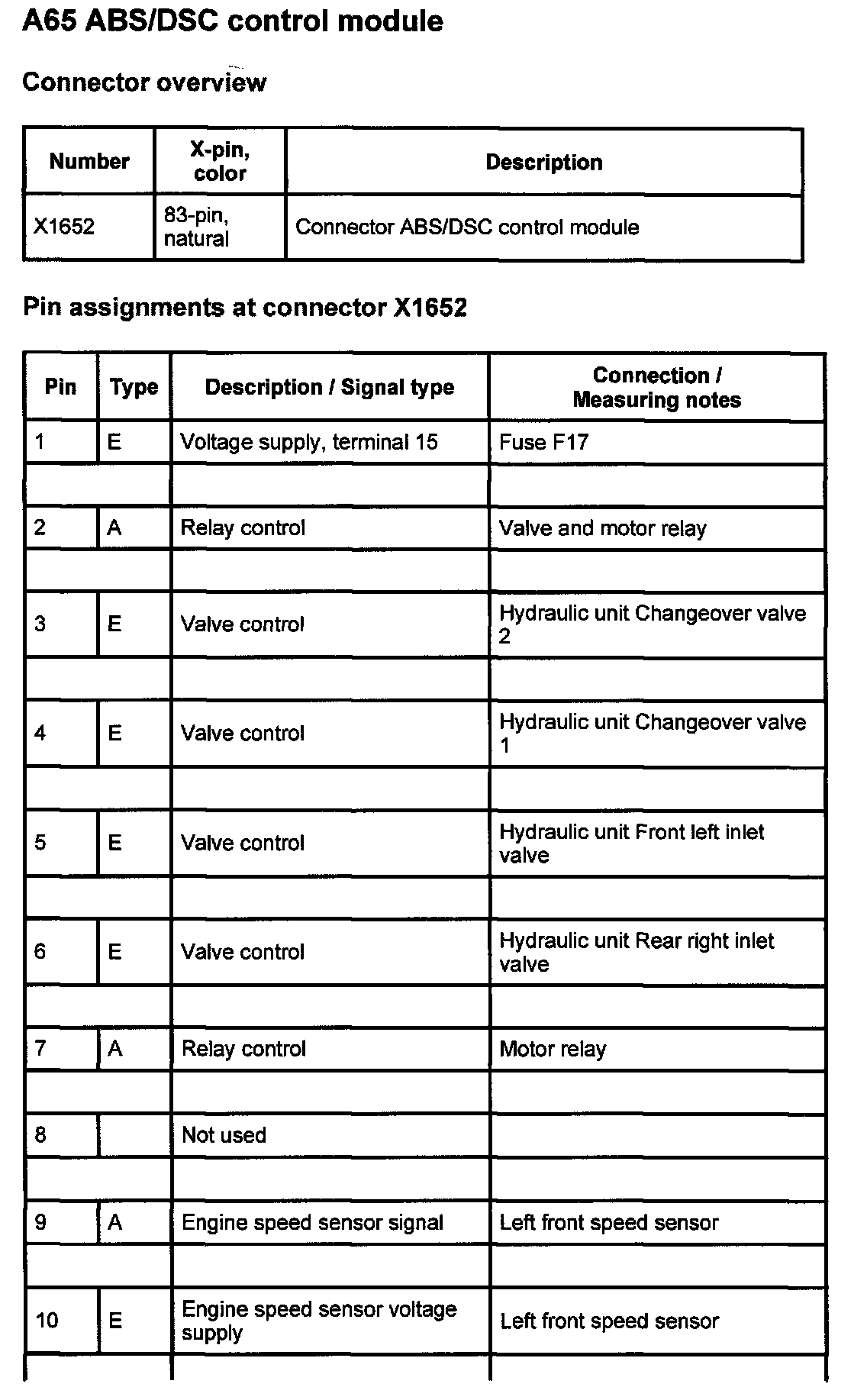 A65 ABS/DSC control module (83-pin)