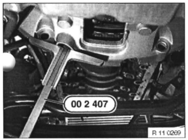 Disconnect plug connection on impulse sensor on crankshaft (flywheel) for DME 2 (cylinder 7-12).