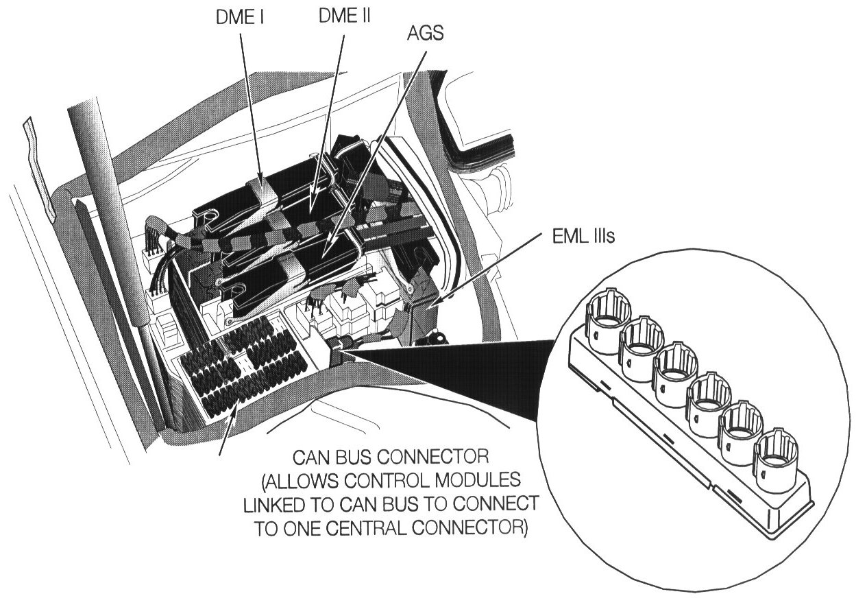 The EML control module communicates with the DME, ASC+T and EGS control modules over the CAN line for the following inputs/outputs: