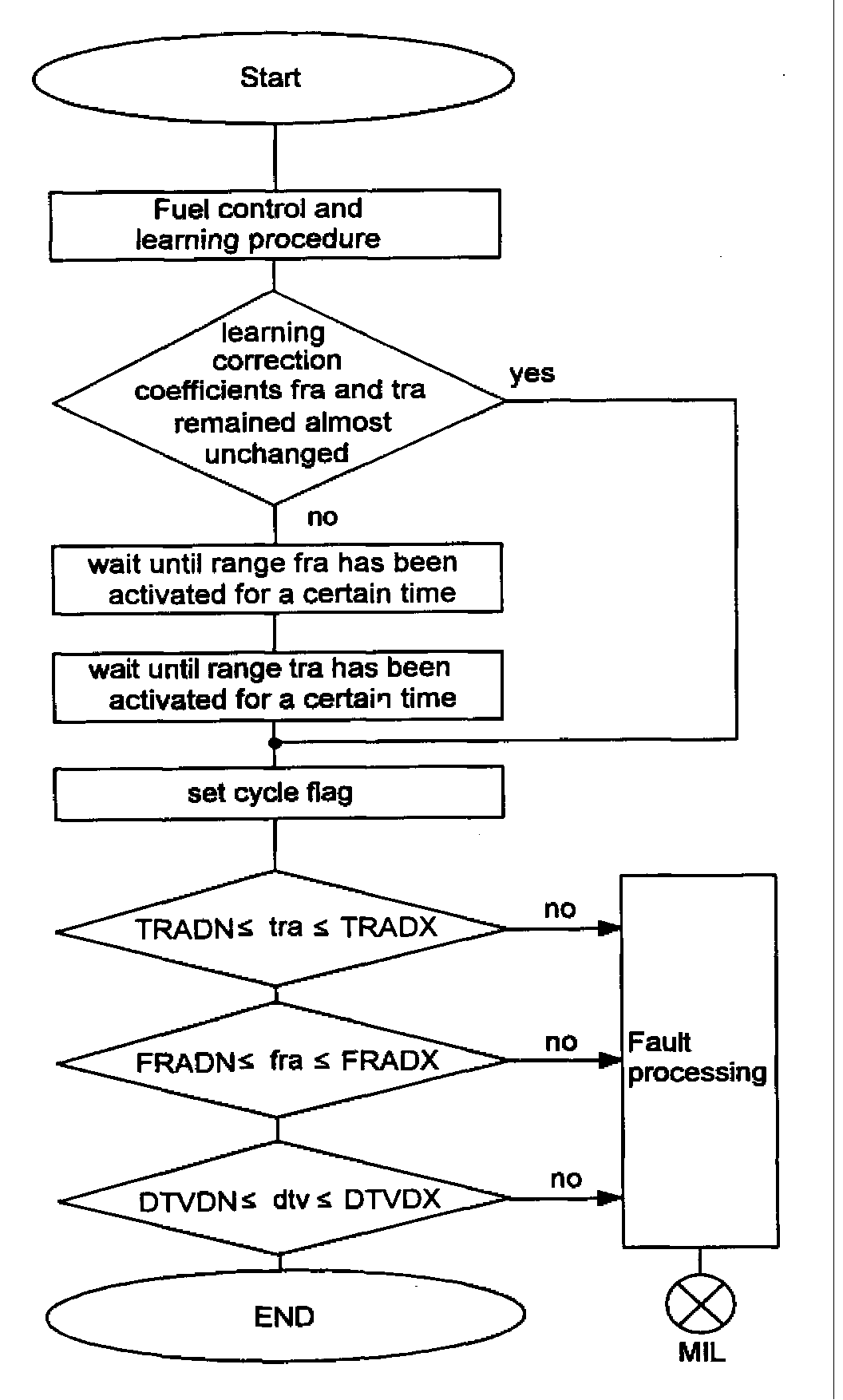 If the adaptive value is outside a plausible range, then the MIL is illuminated and the fault is stored