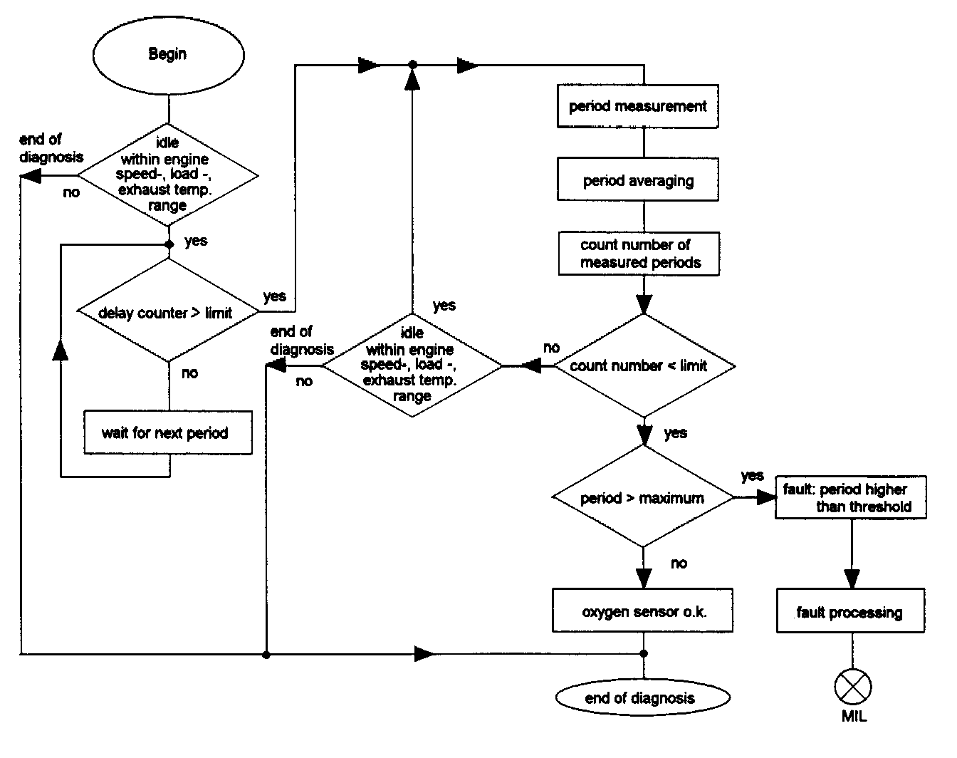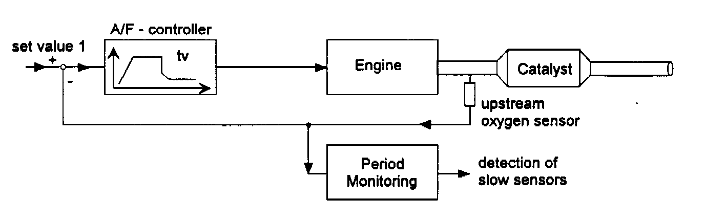 GENERAL DESCRIPTIONThe response rate of the up stream oxygen sensor is monitored by measuring the period of the lambda control oscillations.