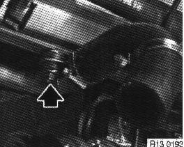 From top of vehicle: unfasten screws, remove pump and bracket by pulling downwards.