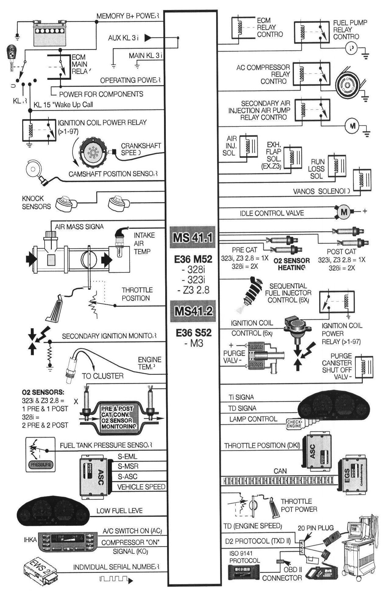 The introduction of the 328i in the 1996 model year also brought the first engine management system manufactured by Siemens to the US market; M541 .1. Compared with Bosch systems, MS 41 .x systems uses a few unique sensors and control methods. MS 41 .x was also the first system to meet TLEV compliancy.