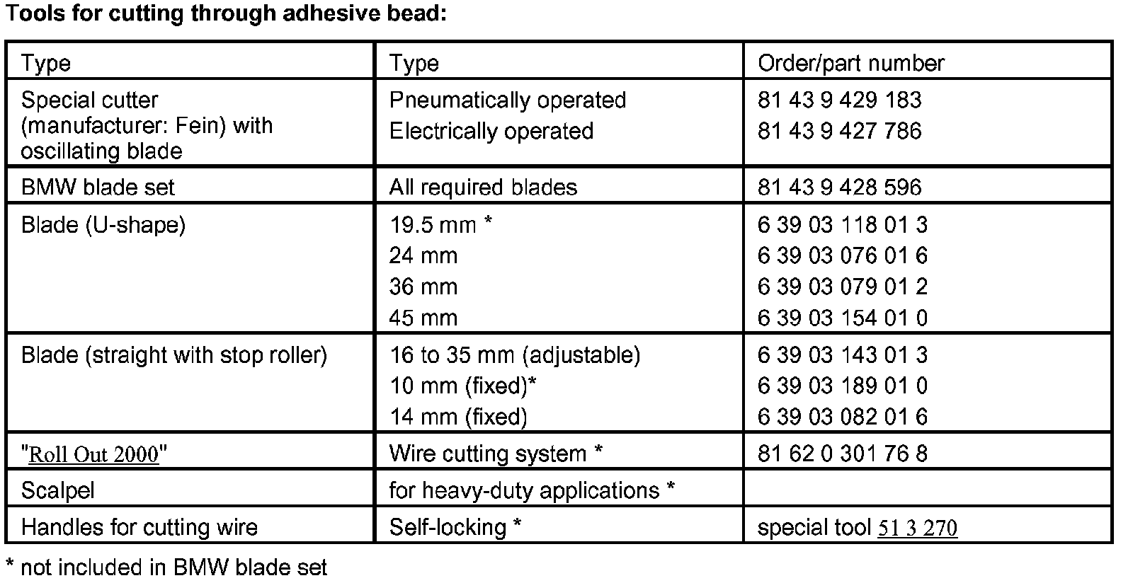 IMPORTANT: As of E63 and E87 it will only be possible to remove the rear window with the "Roll Out 2000".