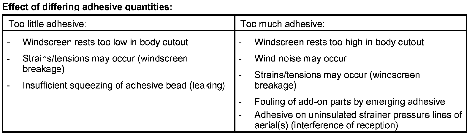 Approx. 1 1/4 adhesive cartridges are required to cement the windscreen on the following vehicles: