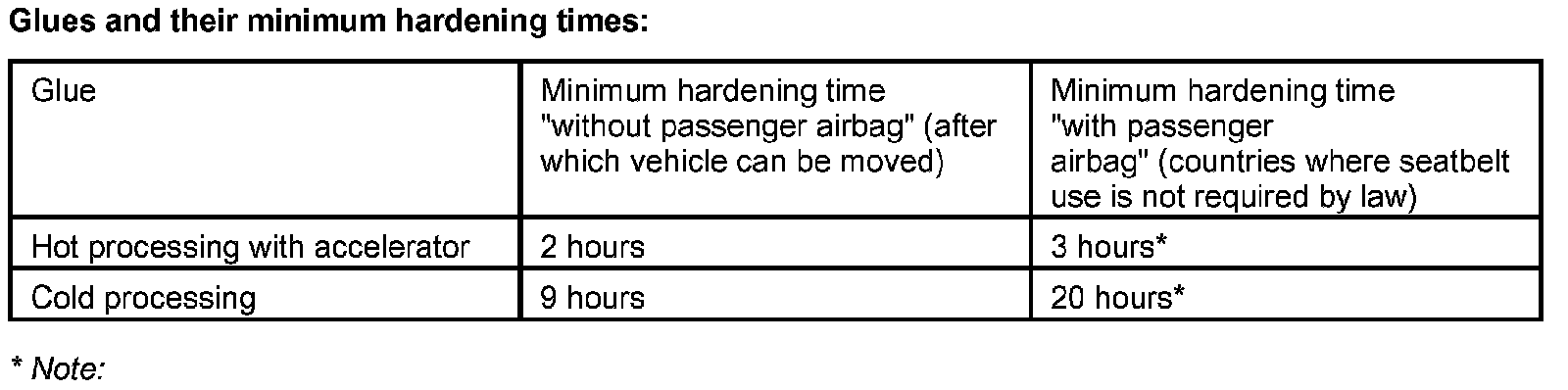 The vehicle can be handed over to the customer after the hardening period (vehicle can be moved, adhesive-dependent) with the following warning: