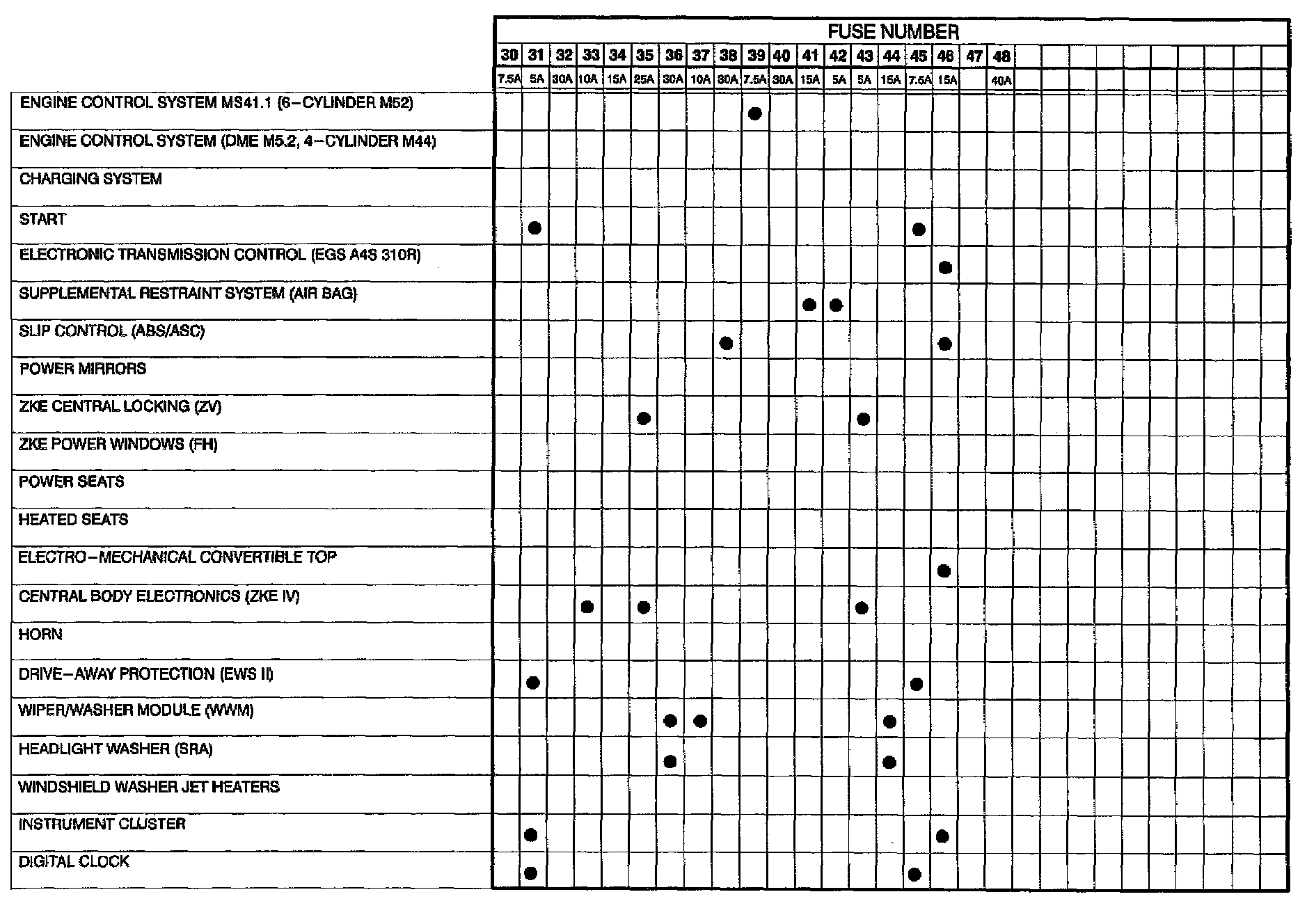Fuse/Relay Locations in Power Distribution Box / E-Box / Relay Panel: