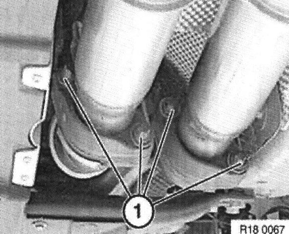 Release screw connections (1) between exhaust manifold and catalytic converter.