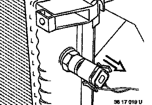 Installation: Attach retaining lugs in left and right sides of radiator and press down firmly. The detent must engage audibly several times.