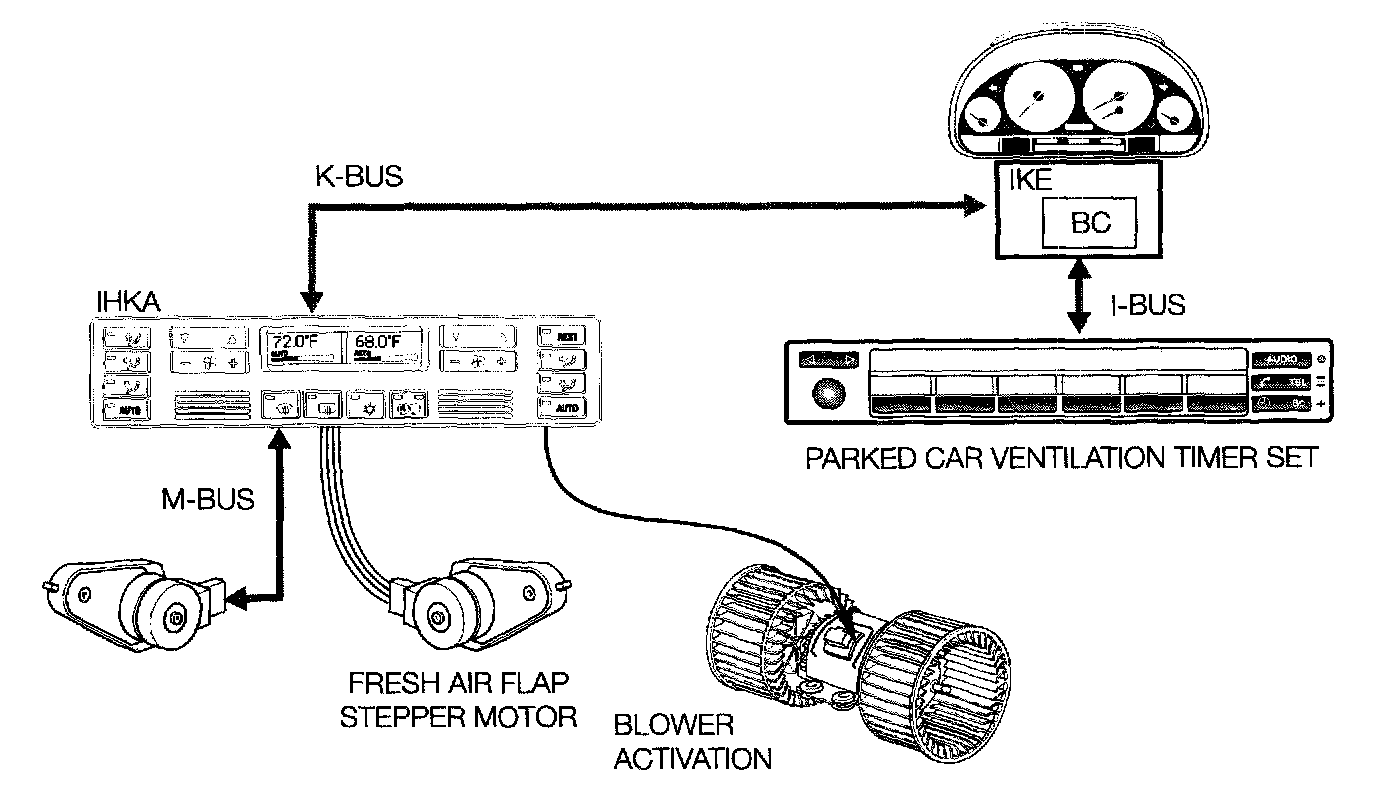 - The BC in the IKE then communicates with the IHKA module over the I-Bus and the K-Bus
