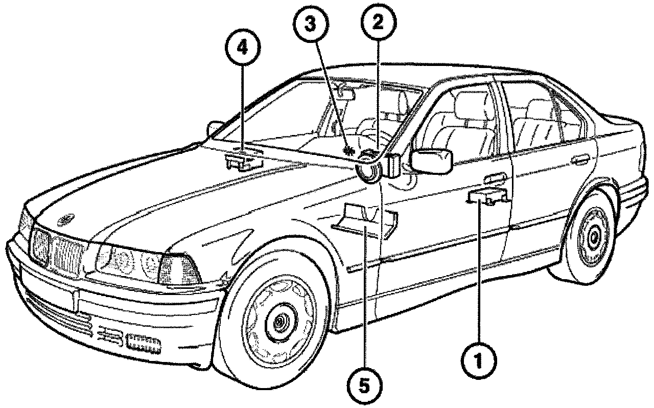 Components:1. Basic airbag unit ECE/central airbag unit US, (beneath rear-seat bench in center)