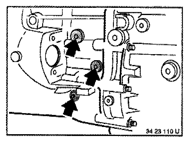 By hand, align the shift arm for 3rd/4th gear with the bore on the case. In this position, turn the bearing pins (2) one after another on the left and right, then secure.