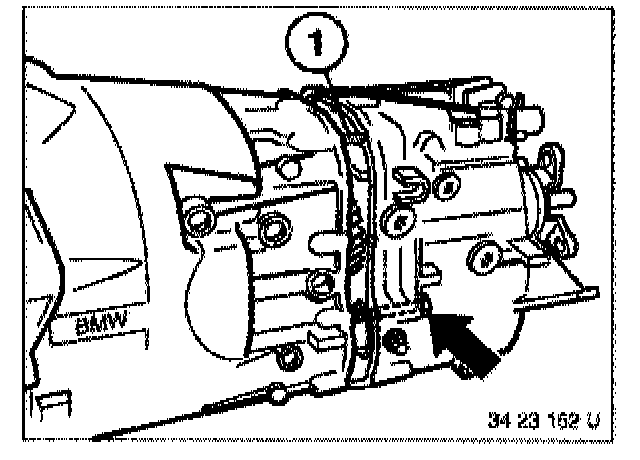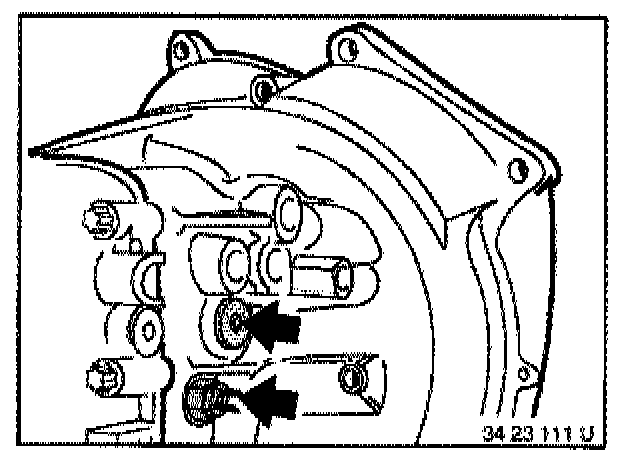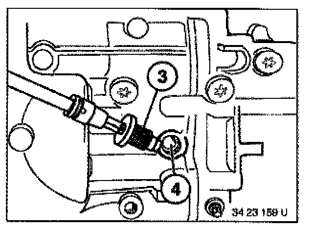 This requires turning the transmission until bore (4) in the locking lever is aligned with the bore in the case.