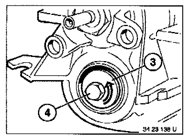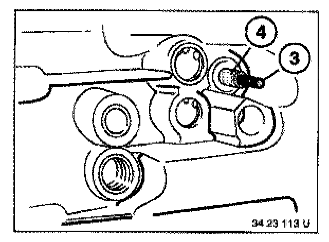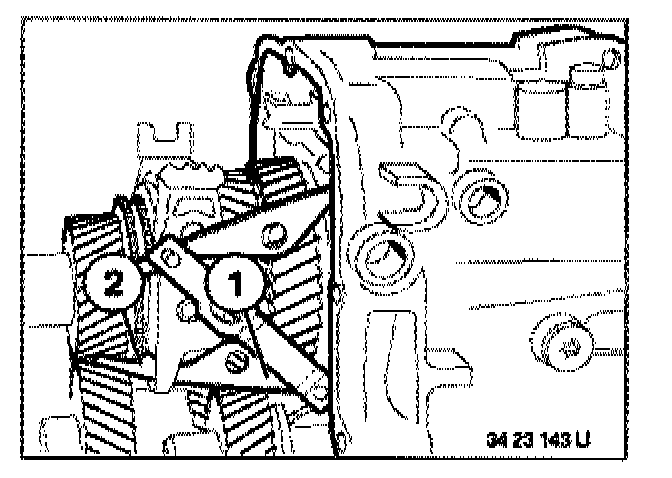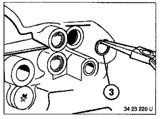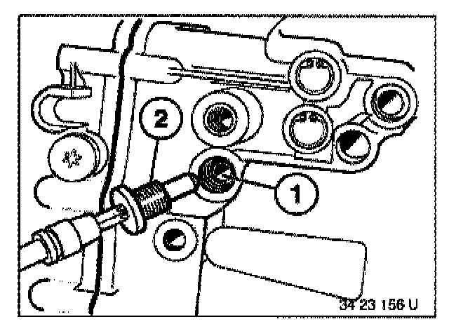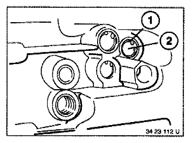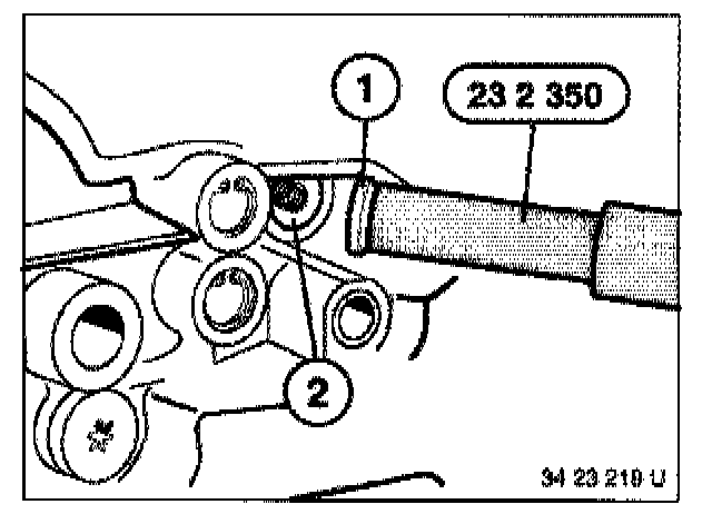 Install sealing cap (1) in bore (2) with Special Tool 23 2 350 and push in as far as possible.