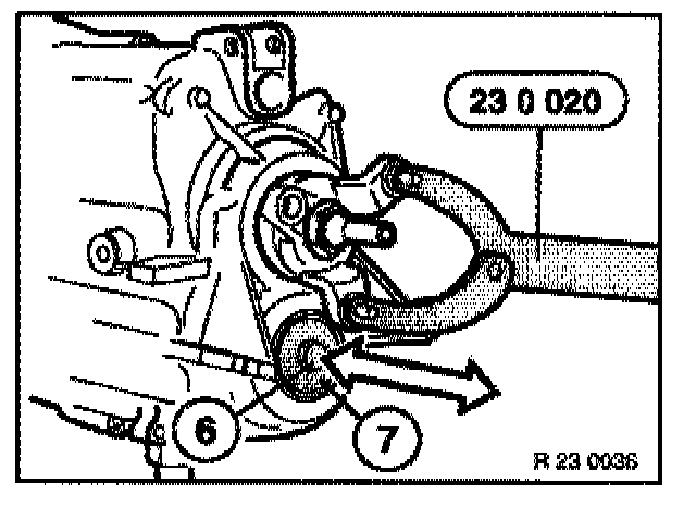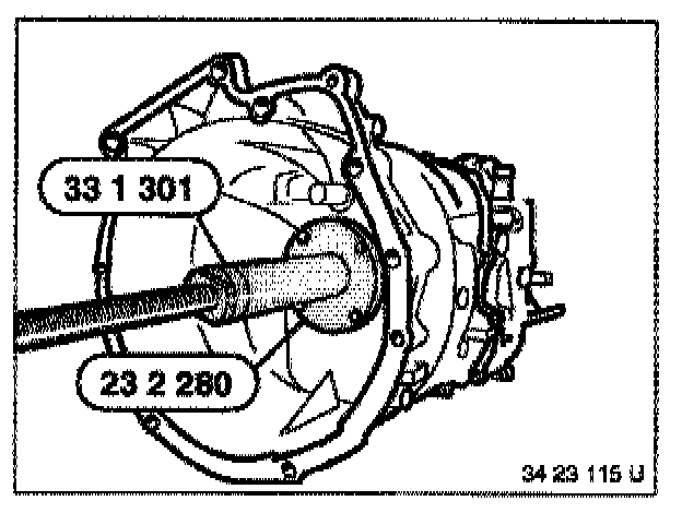 Apply Special Tool 23 2 330 on the output shaft journal. Pull output shaft in to fit tight with Special Tool 23 2 330.