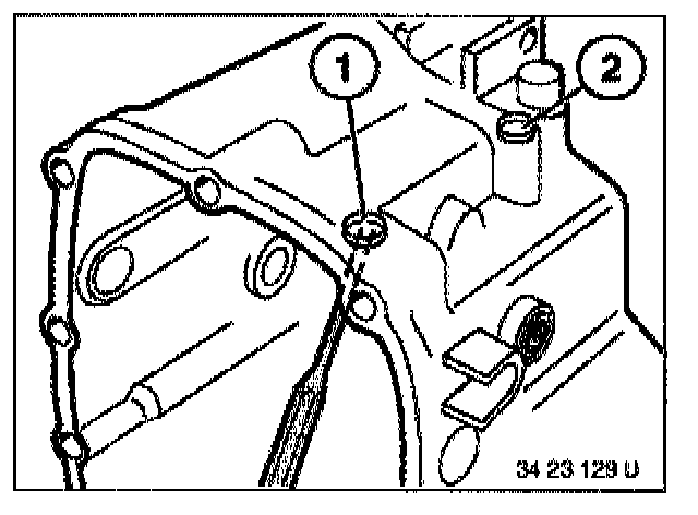 Insert the screw (1) for the reverse gear bolt with suitable screw retaining agent.