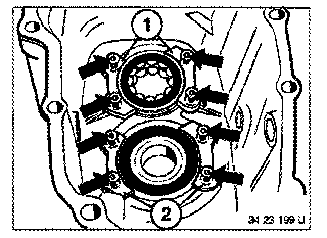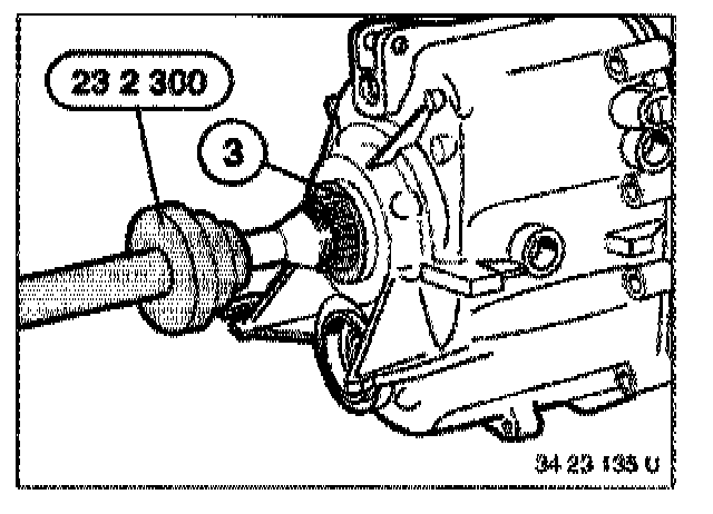 Drive in radial sealing ring (3) for the output flange with Special Tool 23 2 300.