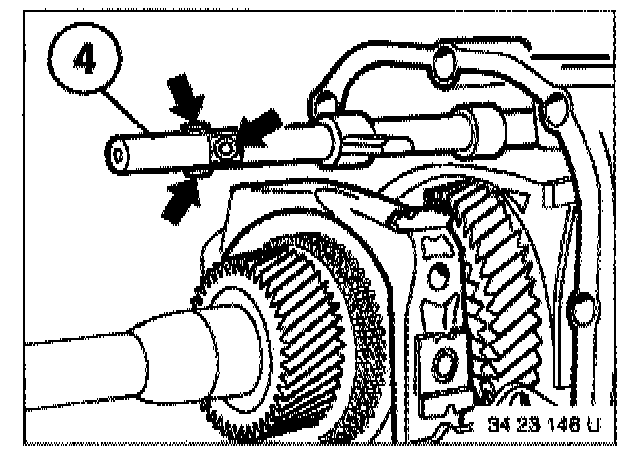 Place the shift arm for 3rd/4th gear with sliding blocks on the operating sleeve at 3rd/4th gear.