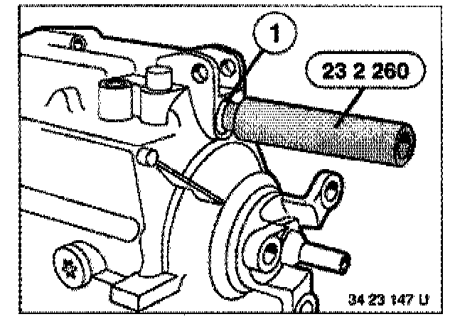 Drive in radial sealing ring (1) for the shift shaft with Special Tool 23 2 260.