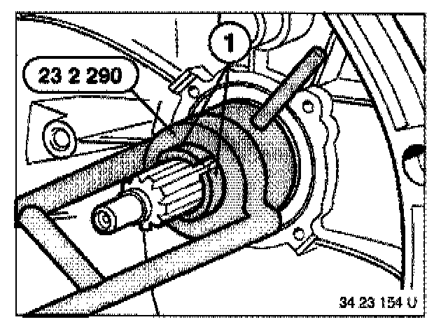 Drive radial sealing ring (1) in flush using Special Tool 23 2 340.