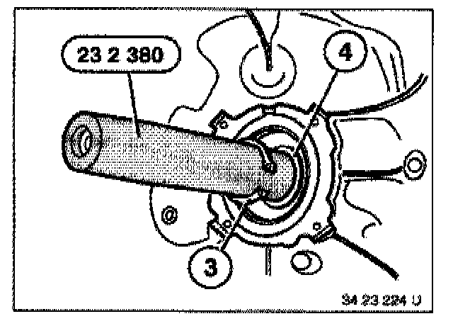 Install circlip (3) and press in as far as groove with Special Tool 23 2 350.