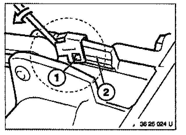 Lift spring (1) off tab (2) on case using a screwdriver and swing upwards.