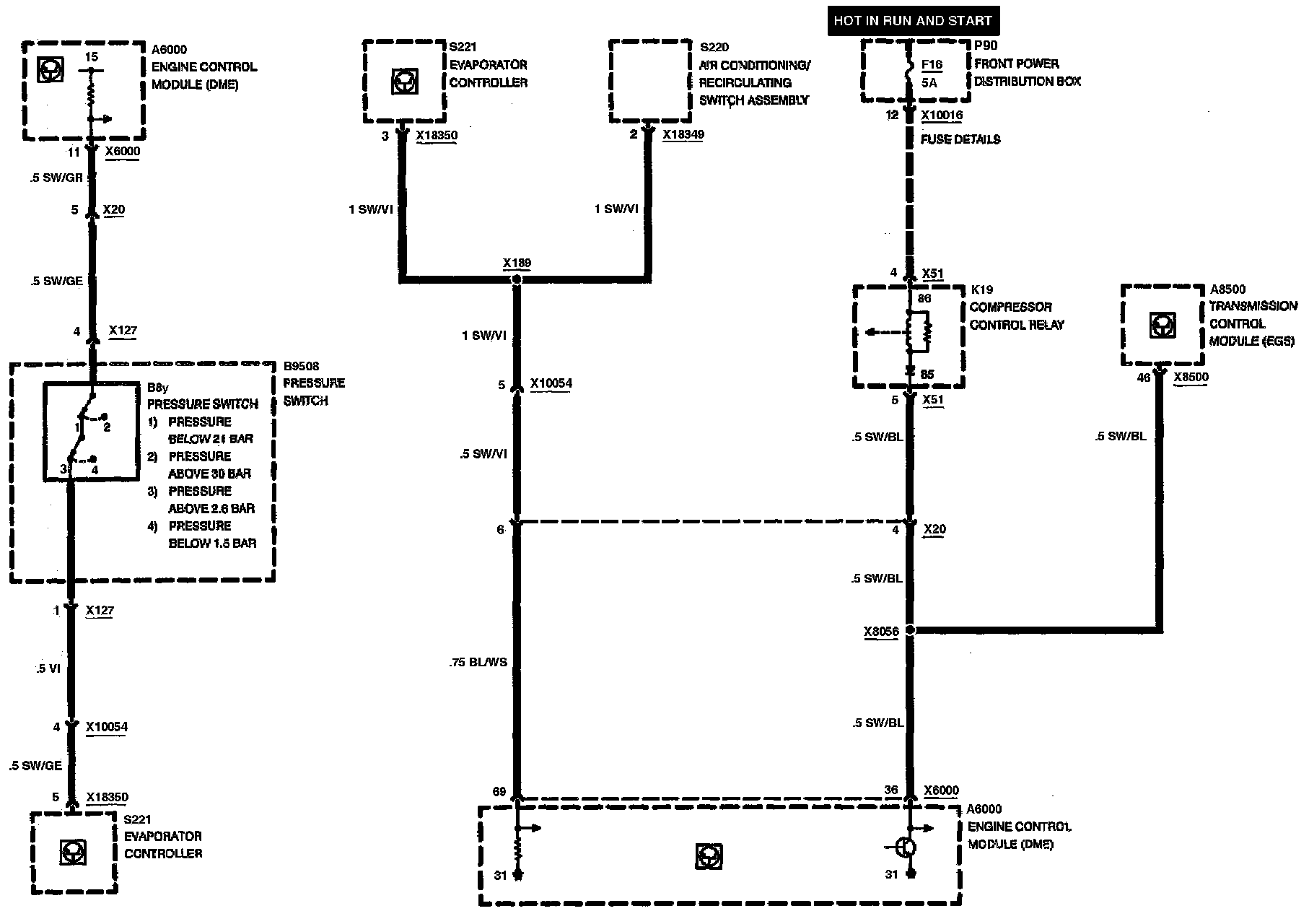 Engine Control System (DME 5.2): Pressure Switch, Compressor Control Relay: