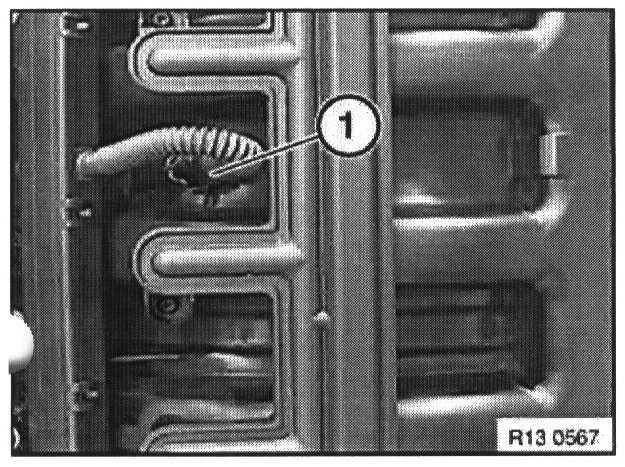 Press catch and withdraw temperature sensor (1) from intake air manifold.
