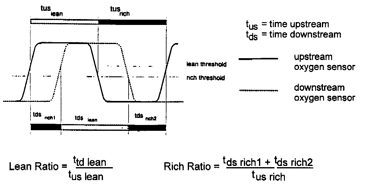 In order to determine the efficiency the lean and rich time periods of the oxygen sensors up- and downstream will be compared.