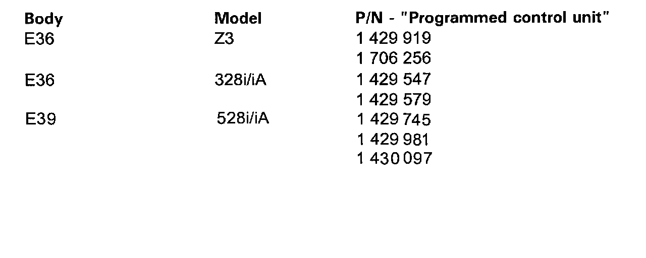 Vehicles produced up to 4/97 that have not been reprogrammed may have one of the following part numbers for a "Programmed control unit" displayed on the DME identification screen of the DIS.