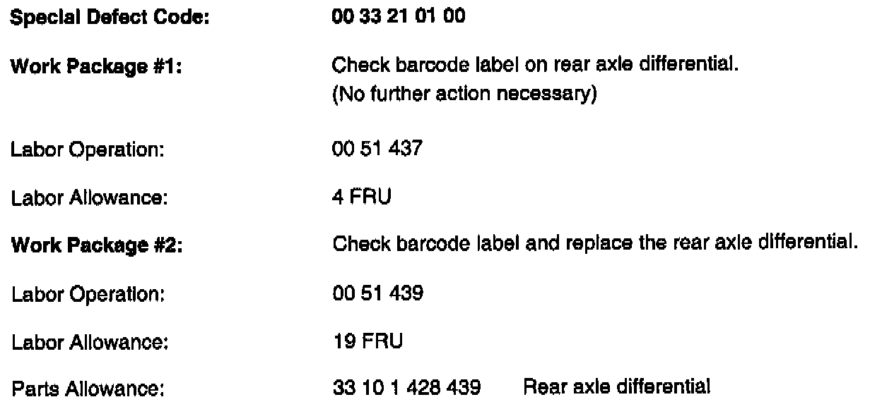 Recall Campaign 99V-272: Rear Axle Differential Check and/or Replacement