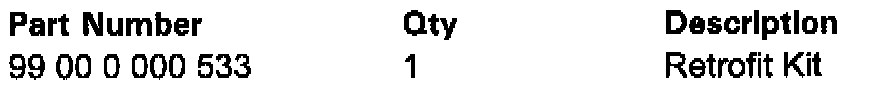 This upgrade kit (P/N 99 00 0 000 533) consists of the following: