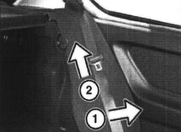 - Unclip backrest side section at bottom (1) and take it out upwards (2).