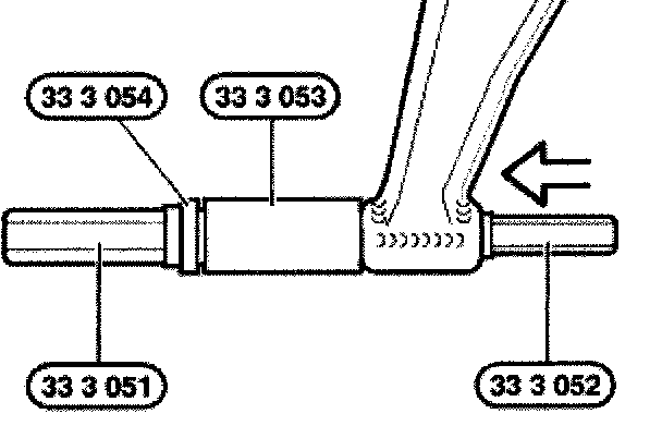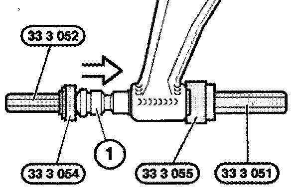 Pull in rubber mount (1) with special tool 33 3 051/052/054/055.