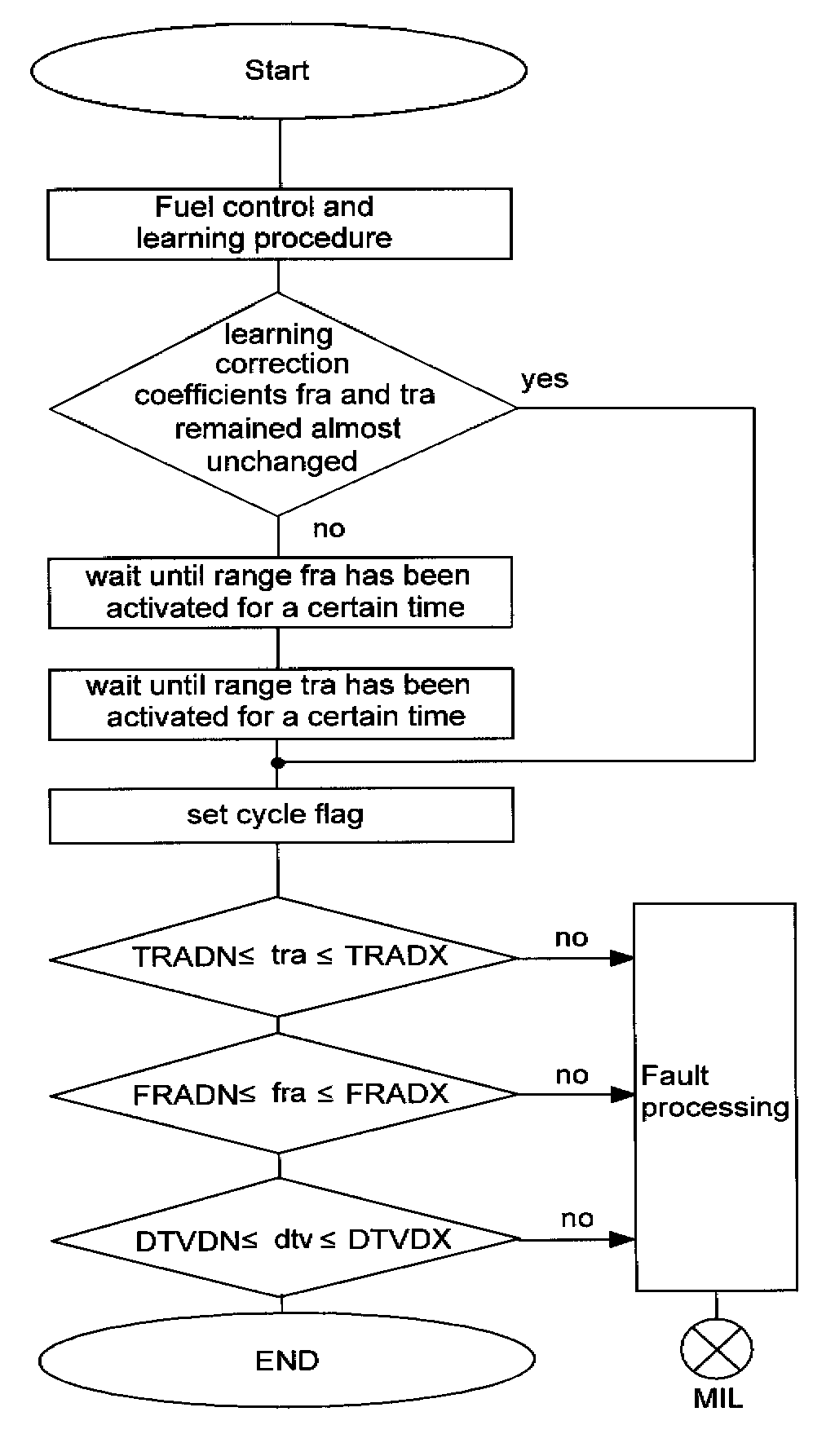If the adaptive value is outside a plausible range, then the MIL is illuminated and the fault is stored.