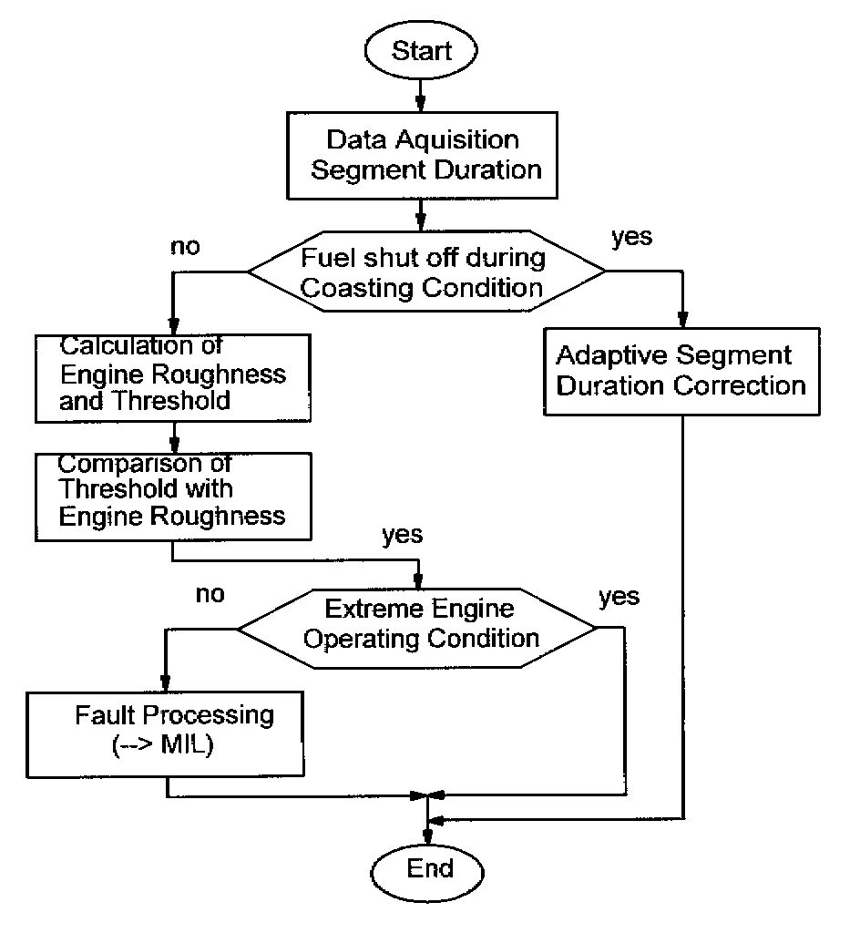 Based on this fact, the periodicity of the engine roughness value is used as additional information during multiple misfiring. The engine roughness value is filtered and a new multiple filter value is created. If this filter value increases due to multiple misfiring, the roughness threshold is decreased. By applying this strategy, multiple misfiring is detected reliably.