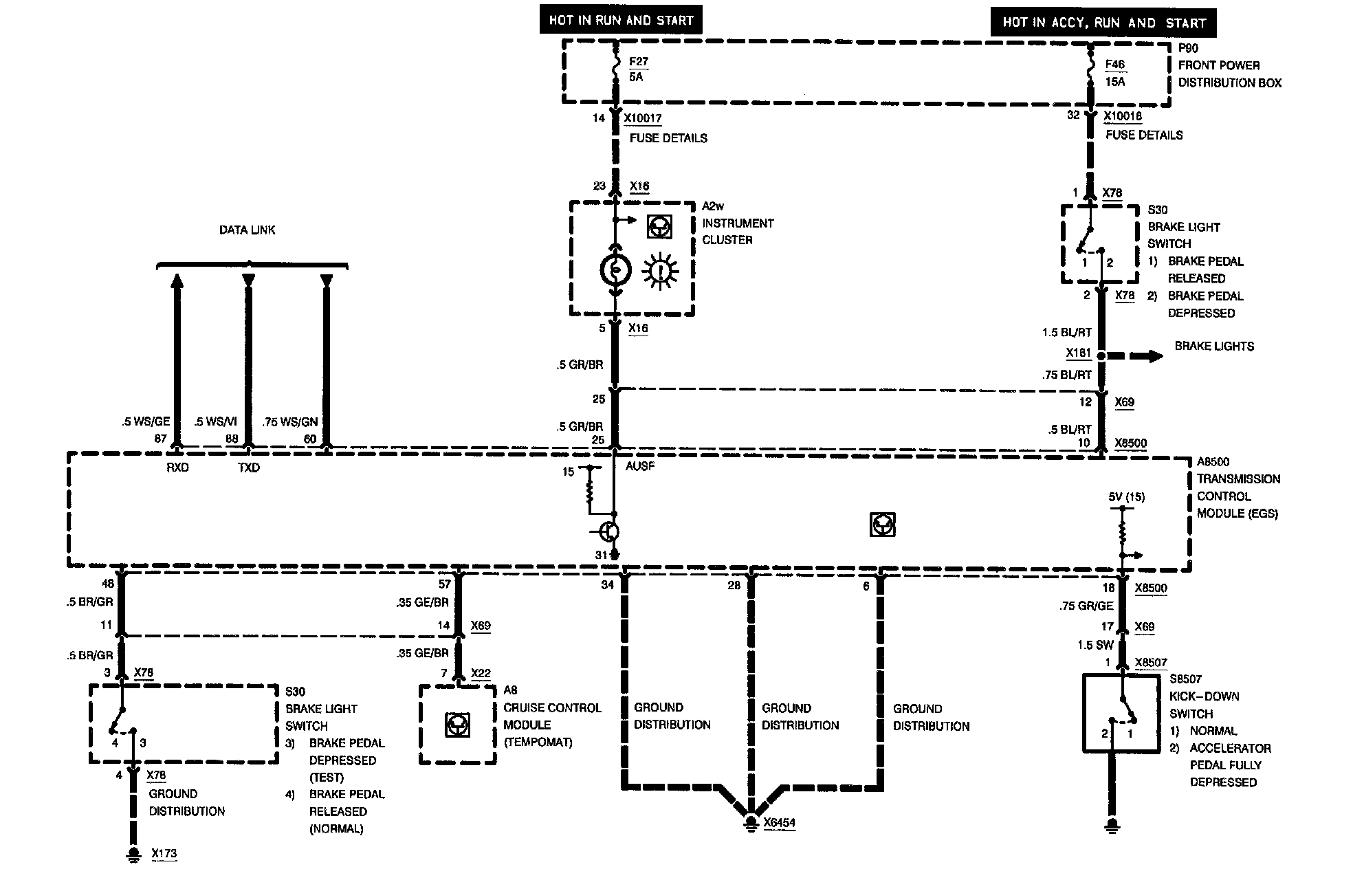 Electronic Transmission Control (EGS A4S 310R): Shift Lock, Data Link, Kick-Down Switch: