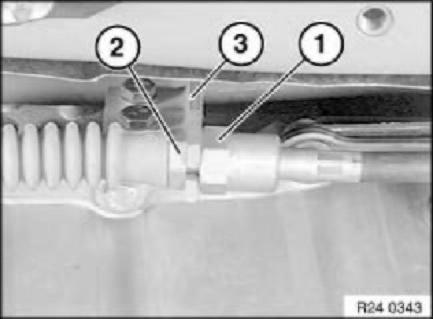 Brace clamping bush (1) and loosen nut (2).