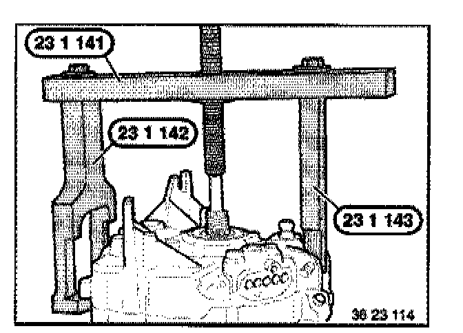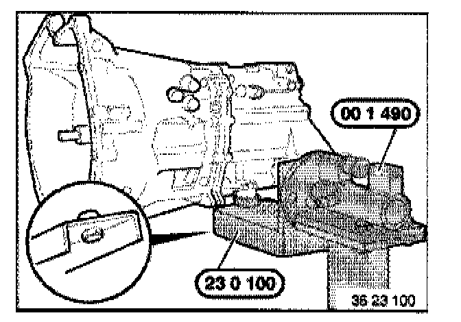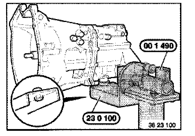 Fit transmission to assembly frame 00 1 490 with special tool 23 0 100.