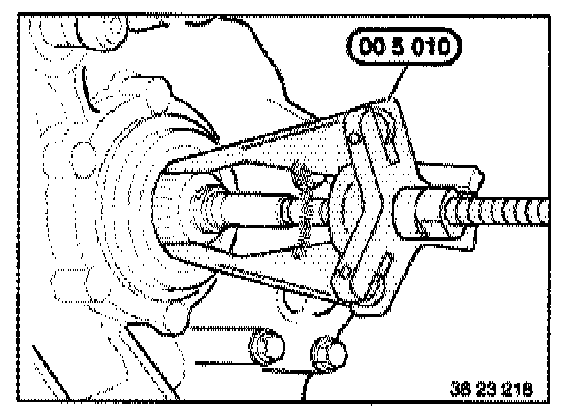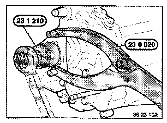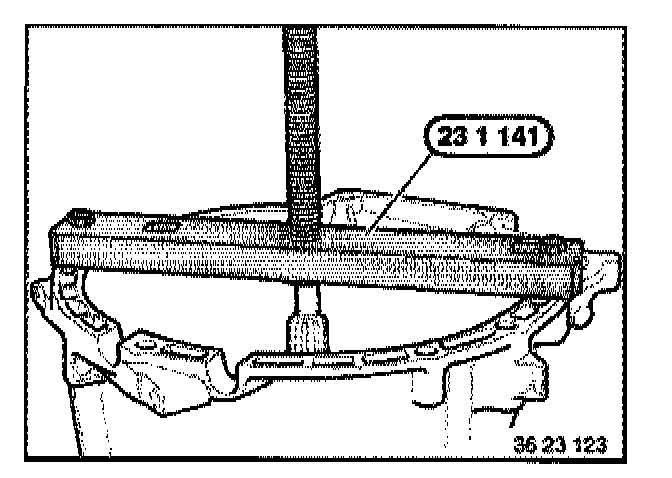 Screw special tool 23 0 490 into one of the two removal holes.