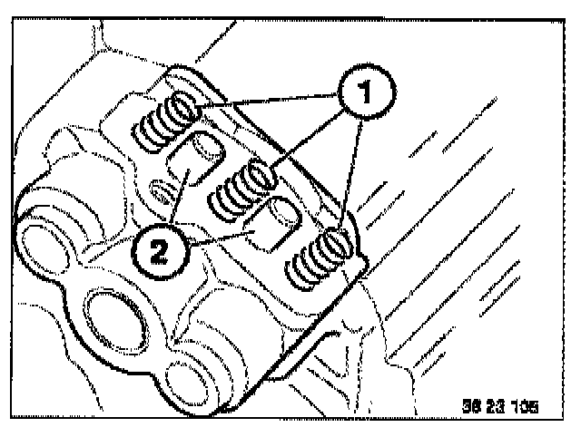 Remove compression springs (1) and cylinder pins (2).