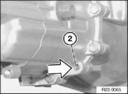 Insert splint driver or screwdriver (1) in bore of selector shaft (2).