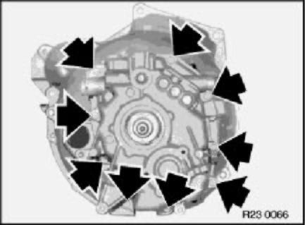 Unfasten screws on transmission case (9 off).