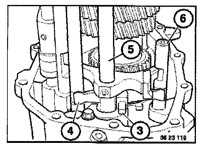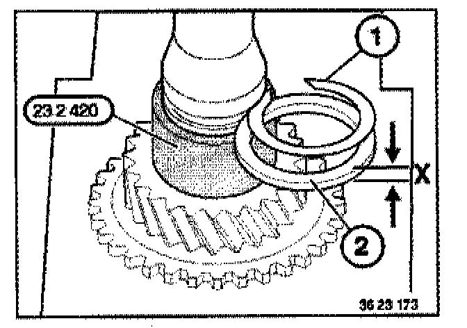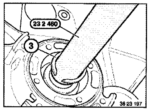 Caution: To avoid damaging input shaft, special tool 23 2 460 must be inserted on the input shaft while installing the circlip (3).