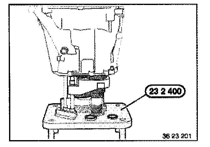 Loosen screw (2) from special tool 23 2 400.