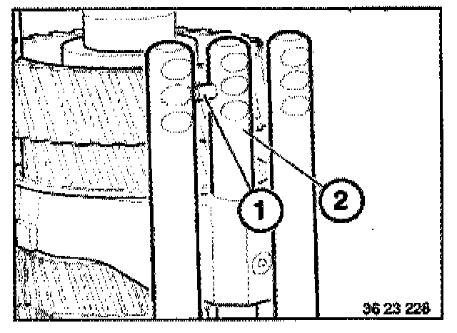 Install locking pin (1) in the selector rod (2) with Vaseline and secure in the centre.