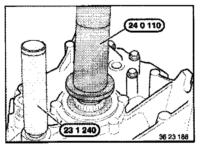 Push in output shaft radial seal with special tool 24 0 110 and selector shaft radial seal with special tool 23 1 240.