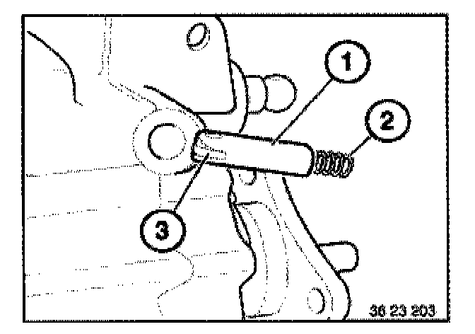 Note: To secure the position of the locking pin (1), the transmission must be shifted into 2nd gear.